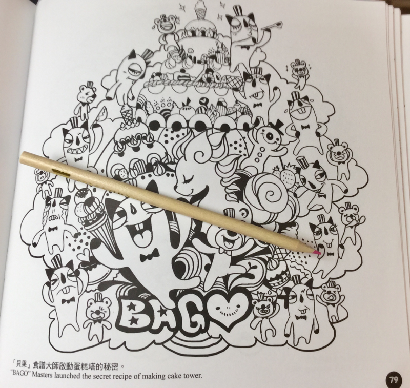 The book has been divided into chapters and the pages have been numbered. The first Chapter – Heart Dreams shows a music score and lyrics or a story written above in what I presume is Taiwanese on one page and English on the facing page. This would be a great place to test out your mediums before you dive into the coloring book proper.