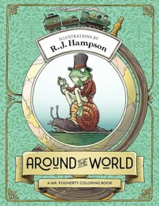 R.J Hampson continues the frog theme with his character Mr. Fogherty, “a Snail, the former circus performer turned valet.” as they travel around the world. Inside the US letter-sized book you will find 25 illustrations printed on single-sided pages. The illustrations have also been reproduced again with some “subtle or dramatic changes, and black backgrounds”