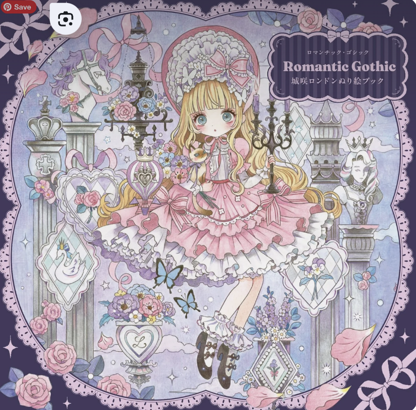 The book features 30 illustrations of Gothic girls, Lolita fashion, cute animals, Halloween, and more”